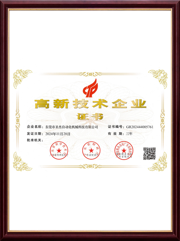 東莞市圣杰自動化機械科技有限公司成立于2010年,座落于電子名鎮(zhèn)——廣東省東 莞市石碣鎮(zhèn),注冊資金800萬,擁有多項發(fā)明專利,實用新型專利,并通過了 ISO9001質量管理體系認證,經(jīng)過多年的發(fā)展與技術沉淀,公司已發(fā)展成為一家專 業(yè)從事非標自動化設備研發(fā)、生產、銷售為一體的高新技術型企業(yè),并在行業(yè)具有 一定的知名度。 圣杰擁有一支高素質、高效率且多年從事非標自動化設備研發(fā)與生產的工程技術團 隊,為客戶提供工程設計、制造安裝、現(xiàn)場調試、技術培訓等全方位的自動化設備 解決方案。主要涉及行業(yè)有:電子連接器行業(yè),建筑五金行業(yè),儀表行業(yè),汽車配 件行業(yè)等。